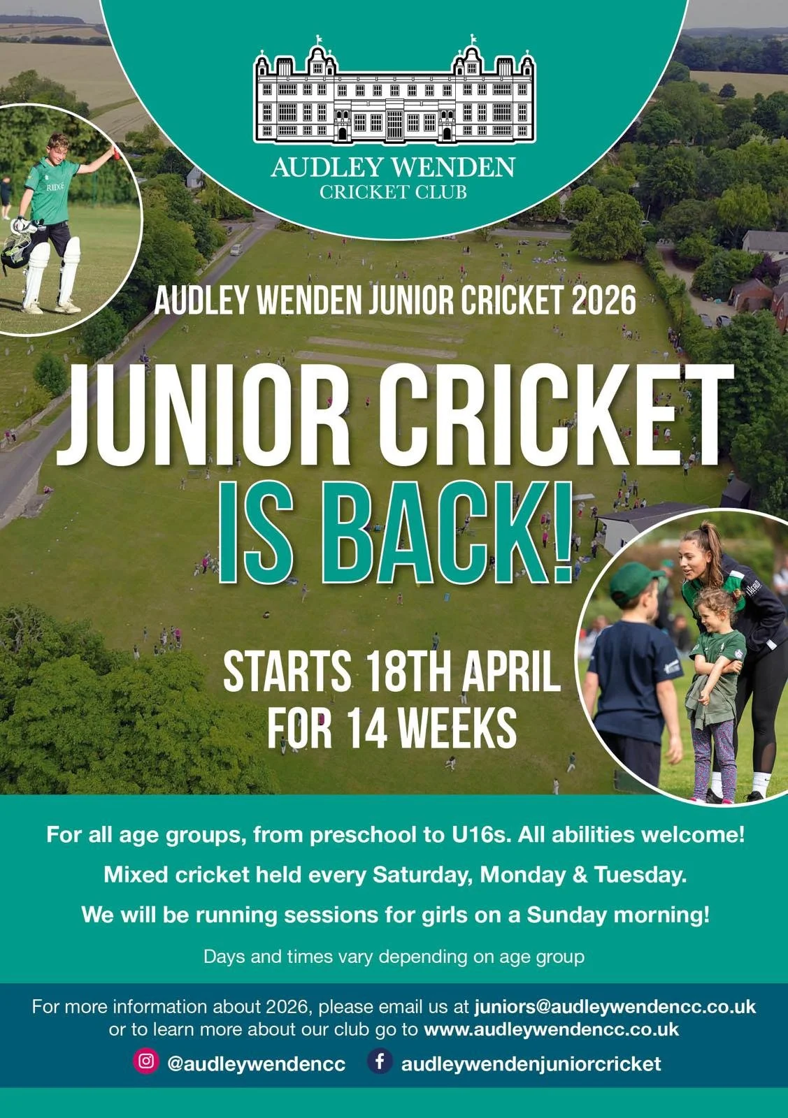 We are a friendly cricket club, open to all, based at Audley End House and the nearby rural village of Wendens Ambo.